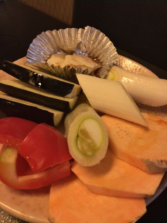 お肉が焼けすぎないように野菜の上に避難。