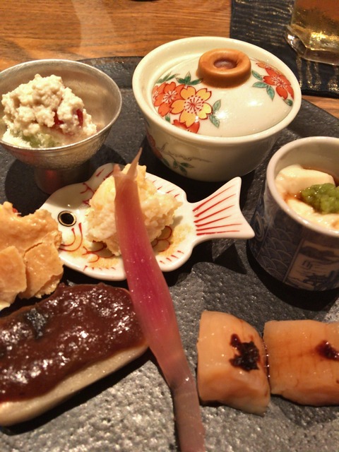 他は岩もずく、サクランボとマスカットの白和え、生湯葉わさび醤油、生麩田楽などなど。